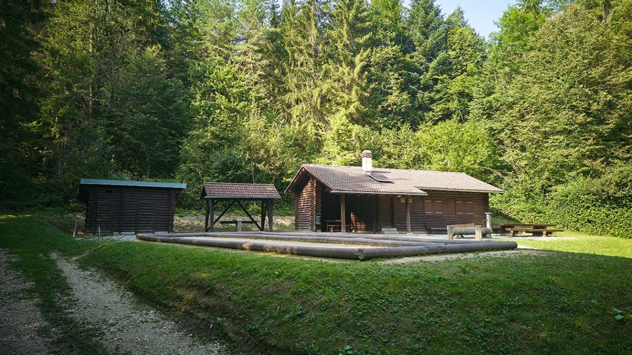 Chalet en rondins, dans la forêt, pas loin de la Venoge. On y accède par le chemin des Bois, à l'entrée sud (côté Grand-Rue) du village. Carte Google Maps